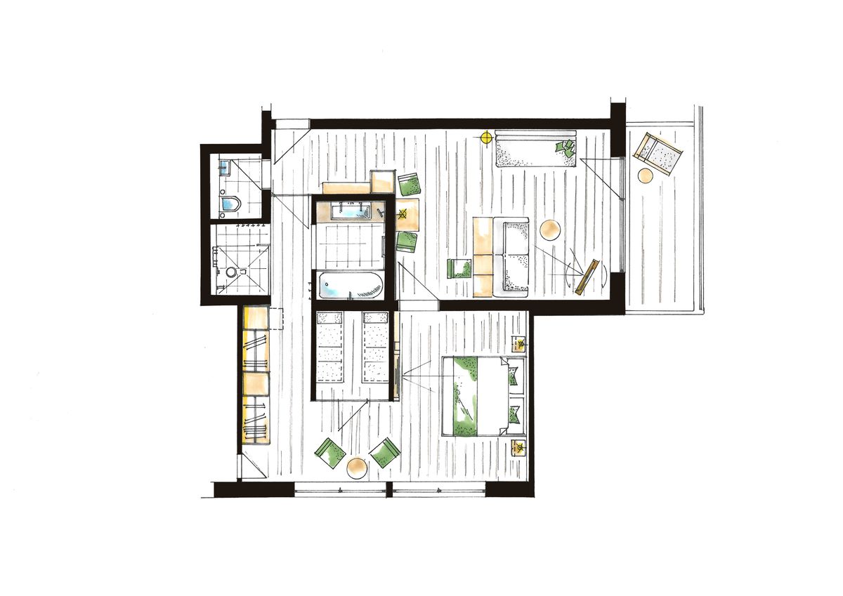 Lässt sich leicht mit unserem Studio Sterngucker kombinieren, wenn man will. Auf 78 m² genießt man Freiheit pur. Im Schlafzimmer mit eigener Infrarotkabine auf weichen Liegen entspannen oder im Wohnzimmer etwas lesen, arbeiten oder einfach auf den Relaxsofas die Füße hochlagern. Mit herrlicher Panoramasicht, die bis zum Säntis reicht.