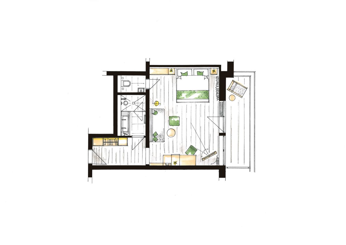 Das moderne Wohn-Schlafstudio kann außerdem mit der Adlerhorst Suite verbunden werden.